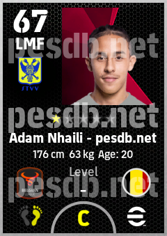 . Adam Nhaili is a Left Midfielder footballer from Belgium who plays for Sint-Truiden Gb in eFootball 2026.