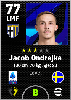 . Jacob Ondrejka is a Left Midfielder footballer from Sweden who plays for Parma Calcio 1913 in eFootball 2026.
