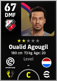 . Oualid Agougil is a Defensive Midfielder footballer from Netherlands who plays for Fc Utrecht in eFootball 2026.