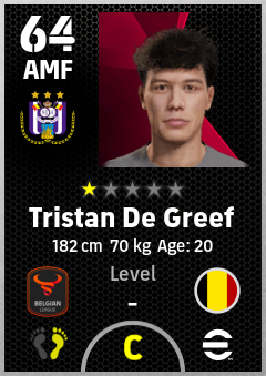 . Tristan De Greef is a Attacking Midfielder footballer from Belgium who plays for Anderlecht Pw in eFootball 2026.