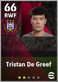 . Tristan De Greef is a Right Wing Forward footballer from Belgium who plays for Anderlecht Pw in eFootball 2026.
