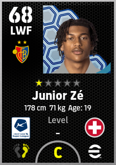 . Junior Zé is a Left Wing Forward footballer from Switzerland who plays for Basel Rb in eFootball 2026.