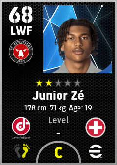 . Junior Zé is a Left Wing Forward footballer from Switzerland who plays for Midtjylland Sr in eFootball 2026.