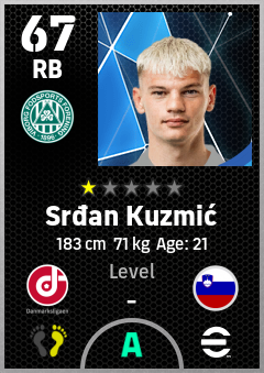 . Srđan Kuzmić is a Right Back footballer from Slovenia who plays for Viborg Gh in eFootball 2026.