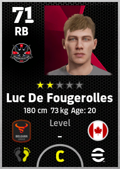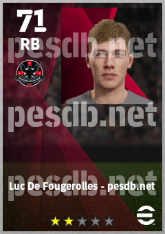 . Luc De Fougerolles is a Right Back footballer from Canada who plays for Denderleeuw Bzr in eFootball 2026.