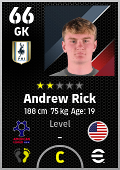 . Andrew Rick is a Goalkeeper footballer from United States who plays for Philadelphia By in eFootball 2026.