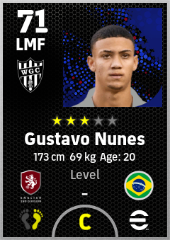 . Gustavo Nunes is a Left Midfielder footballer from Brazil who plays for Swansea W in eFootball 2026.