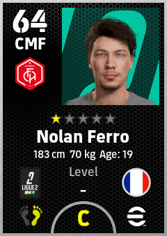 . Nolan Ferro is a Center Midfielder footballer from France who plays for Fc Annecy in eFootball 2026.