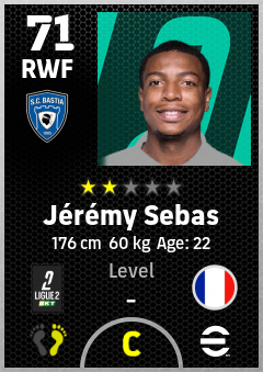 . Jérémy Sebas is a Right Wing Forward footballer from France who plays for Sc Bastia in eFootball 2026.