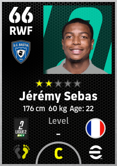 . Jérémy Sebas is a Right Wing Forward footballer from France who plays for Sc Bastia in eFootball 2026.