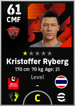 . Kristoffer Ryberg is a Center Midfielder footballer from Thailand who plays for Uthai Thani Fc in eFootball 2026.