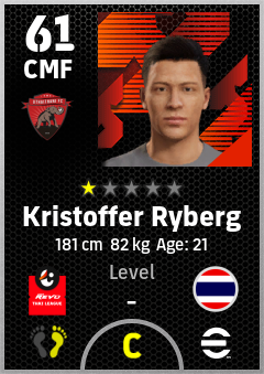 . Kristoffer Ryberg is a Center Midfielder footballer from Thailand who plays for Uthai Thani Fc in eFootball 2026.