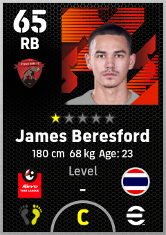 . James Beresford is a Right Back footballer from Thailand who plays for Uthai Thani Fc in eFootball 2026.