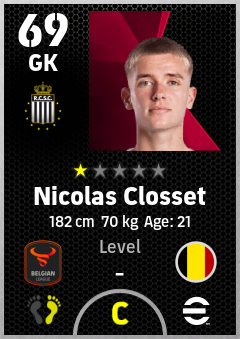 . Nicolas Closset is a Goalkeeper footballer from Belgium who plays for Charleroi Zw in eFootball 2026.