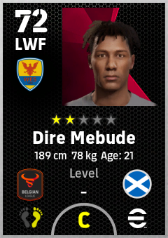 . Dire Mebude is a Left Wing Forward footballer from Scotland who plays for Westerlo Gb in eFootball 2026.