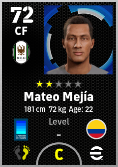 . Mateo Mejía is a Center Forward footballer from Colombia who plays for Burgos Nb in eFootball 2026.