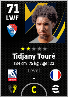 . Tidjany Touré is a Left Wing Forward footballer from France who plays for Gil Vicente Fc in eFootball 2026.
