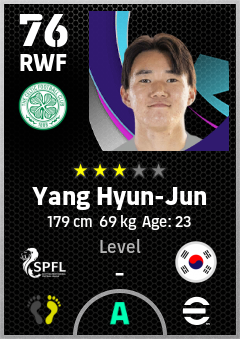 . Yang Hyun-Jun is a Right Wing Forward footballer from Korea Republic who plays for Celtic Fc in eFootball 2026.