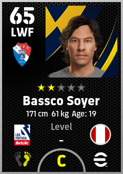 . Bassco Soyer is a Left Wing Forward footballer from Peru who plays for Gil Vicente Fc in eFootball 2026.