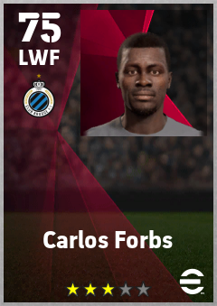 . Carlos Forbs is a Left Wing Forward footballer from Portugal who plays for Brugge Bz in eFootball 2026.