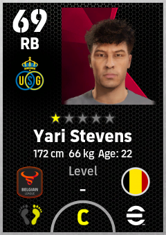 . Yari Stevens is a Right Back footballer from Belgium who plays for Saint-Gilles Bg in eFootball 2026.