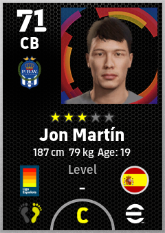 . Jon Martín is a Center Back footballer from Spain who plays for Vasco Gipuzkoa Ab in eFootball 2026.