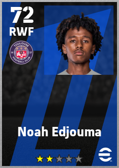 . Noah Edjouma is a Right Wing Forward footballer from France who plays for Toulouse Fc in eFootball 2026.