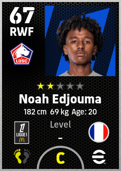 . Noah Edjouma is a Right Wing Forward footballer from France who plays for Losc Lille in eFootball 2026.