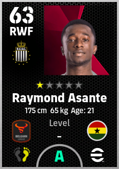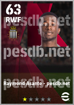 . Raymond Asante is a Right Wing Forward footballer from Ghana who plays for Charleroi Zw in eFootball 2026.