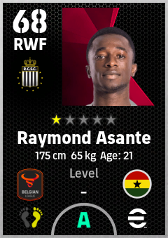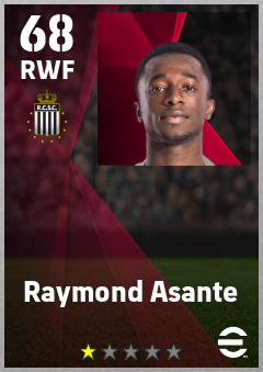 . Raymond Asante is a Right Wing Forward footballer from Ghana who plays for Charleroi Zw in eFootball 2026.
