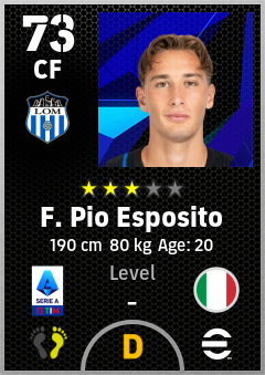 . F. Pio Esposito is a Center Forward footballer from Italy who plays for Internazionale Milano in eFootball 2026.