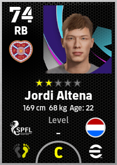 . Jordi Altena is a Right Back footballer from Netherlands who plays for Heart Of Midlothian Fc in eFootball 2026.
