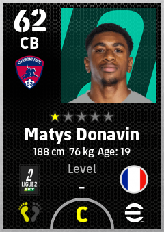 . Matys Donavin is a Center Back footballer from France who plays for Clermont Foot 63 in eFootball 2026.