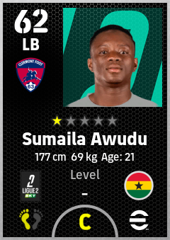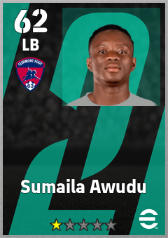 . Sumaila Awudu is a Left Back footballer from Ghana who plays for Clermont Foot 63 in eFootball 2026.