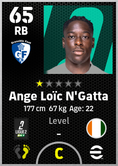 . Ange Loïc N'gatta is a Right Back footballer from Côte D'ivoire who plays for Grenoble Foot 38 in eFootball 2026.