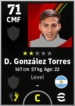 . D. González Torres is a Center Midfielder footballer from Argentina who plays for Free in eFootball 2026.