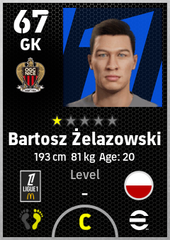 . Bartosz Żelazowski is a Goalkeeper footballer from Poland who plays for Ogc Nice in eFootball 2026.