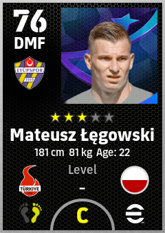 . Mateusz Łęgowski is a Defensive Midfielder footballer from Poland who plays for Eyüpspor in eFootball 2026.