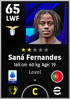 . Saná Fernandes is a Left Wing Forward footballer from Portugal who plays for S.s. Lazio in eFootball 2026.