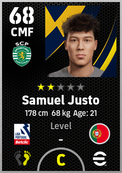 . Samuel Justo is a Center Midfielder footballer from Portugal who plays for Sporting Cp in eFootball 2026.