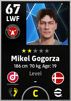 . Mikel Gogorza is a Left Wing Forward footballer from Denmark who plays for Midtjylland Sr in eFootball 2026.