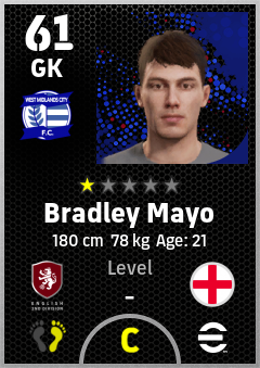 . Bradley Mayo is a Goalkeeper footballer from England who plays for Birmingham B in eFootball 2026.
