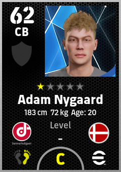 . Adam Nygaard is a Center Back footballer from Denmark who plays for Fredericia Rs in eFootball 2026.