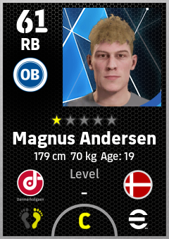 . Magnus Andersen is a Right Back footballer from Denmark who plays for Odense Hb in eFootball 2026.