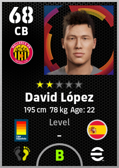 . David López is a Center Back footballer from Spain who plays for Mallorca Rn in eFootball 2026.