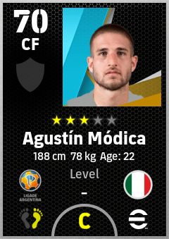 . Agustín Módica is a Center Forward footballer from Italy who plays for Mendoza Nb in eFootball 2026.