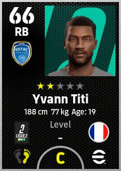 . Yvann Titi is a Right Back footballer from France who plays for Estac Troyes in eFootball 2026.