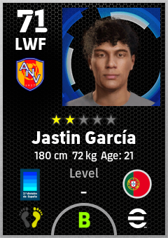 . Jastin García is a Left Wing Forward footballer from Portugal who plays for Andorra La Vella Aar in eFootball 2026.