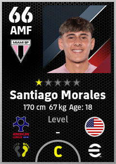 . Santiago Morales is a Attacking Midfielder footballer from United States who plays for Miami Bp in eFootball 2026.