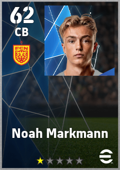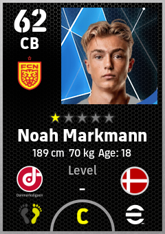 . Noah Markmann is a Center Back footballer from Denmark who plays for Nordsjælland Rg in eFootball 2026.